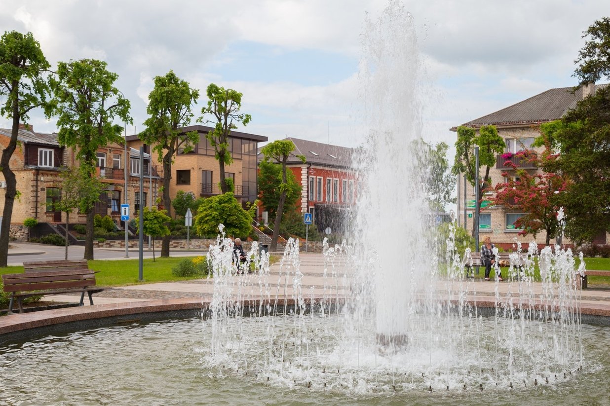 Senamiesčio skverą juosia Bažnyčios ir Alyvų Tako gatvės. Prieš Antrąjį pasaulinį karą čia buvo gyvenamieji, prekybininkų ir amatininkų namai, kurie subombarduoti per pirmą vokiečių lėktuvų antskrydį. Po karo namai nebuvo atstatyti, o buvo suformuota aikštė. 1956 m. ji pavadinta Gegužės 1-osios aikšte, o 1977 m. buvo sutvarkyta, įrengtas fontanas, pastatytas paminklas tarybiniam veikėjui Juozui Vitui. 1990 m. paminklas demontuotas. 2012 m. buvo rekonstruotas skveras. Naujai įrengtą margaspalvį fontaną papuošė rašytojo Jurgio Kunčino eilės.