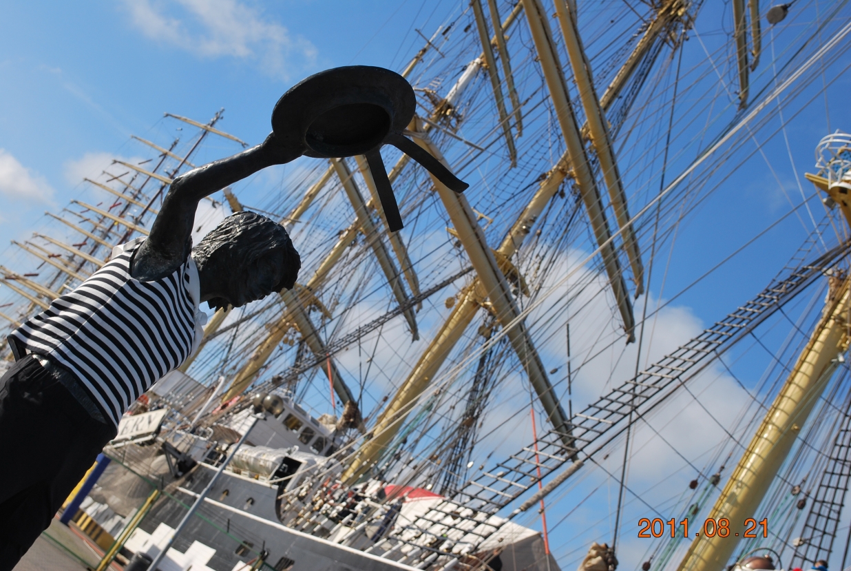 „Vaikystės svajonę” uostamiesčiui sukūrė ir padovanojo klaipėdiečiai menininkai Svajūnas Jurkus ir Vytautas Paulionis. Skulptūrinę kompoziciją, turinčią vienintelę misiją – puošti miestą, sudaro ant didžiulio akmens pasilypėjęs ir už pavadėlio laikantis grakštų skaliką berniūkštis, jūreiviška kepurėle mojuojantis praplaukiantiems laivams. Natūralaus ūgio (140 cm) padauža bei jo šunelis matosi iš tolo ir džiugina keliaujančių mariomis žvilgsnį.
